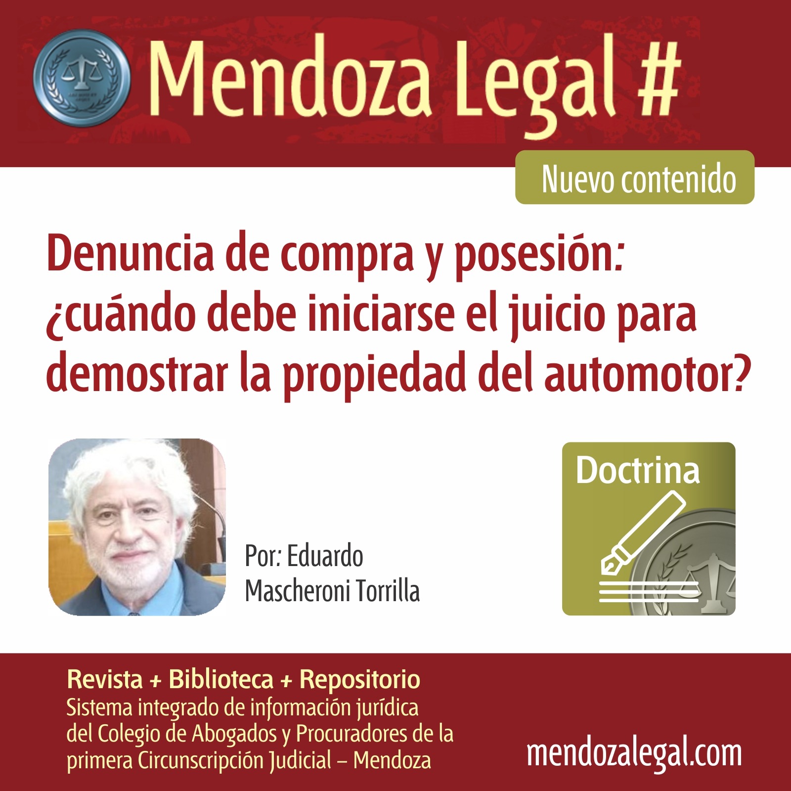 El autor analiza la denuncia de compra y posesión que permite regularizar el dominio del automotor por parte del adquirente que posee el automotor. La misma fue incorporada por el artículo 1.899 del Código Civil y Comercial de la Nación, y reglamentada en el año 2018 por Disposición DN N° 317/18, hoy Capítulo V Título II del DNTR, en favor de los poseedores de un vehículo que no contaban con la solicitud tipo 08 suscripta por el titular registral para solicitar la transferencia. En Mendoza Legal, el sistema integrado de información jurídica del Colegio de Abogados y Procuradores de la Primera Circunscripción Judicial de Mendoza, puedes consultar el texto completo de este trabajo, haciendo clic aquí: https://mendozalegal.com/2025/03/06/denuncia-de-compra-y-posesion-cuando-debe-iniciarse-el-juicio-para-demostrar-la-propiedad-del-automotor/