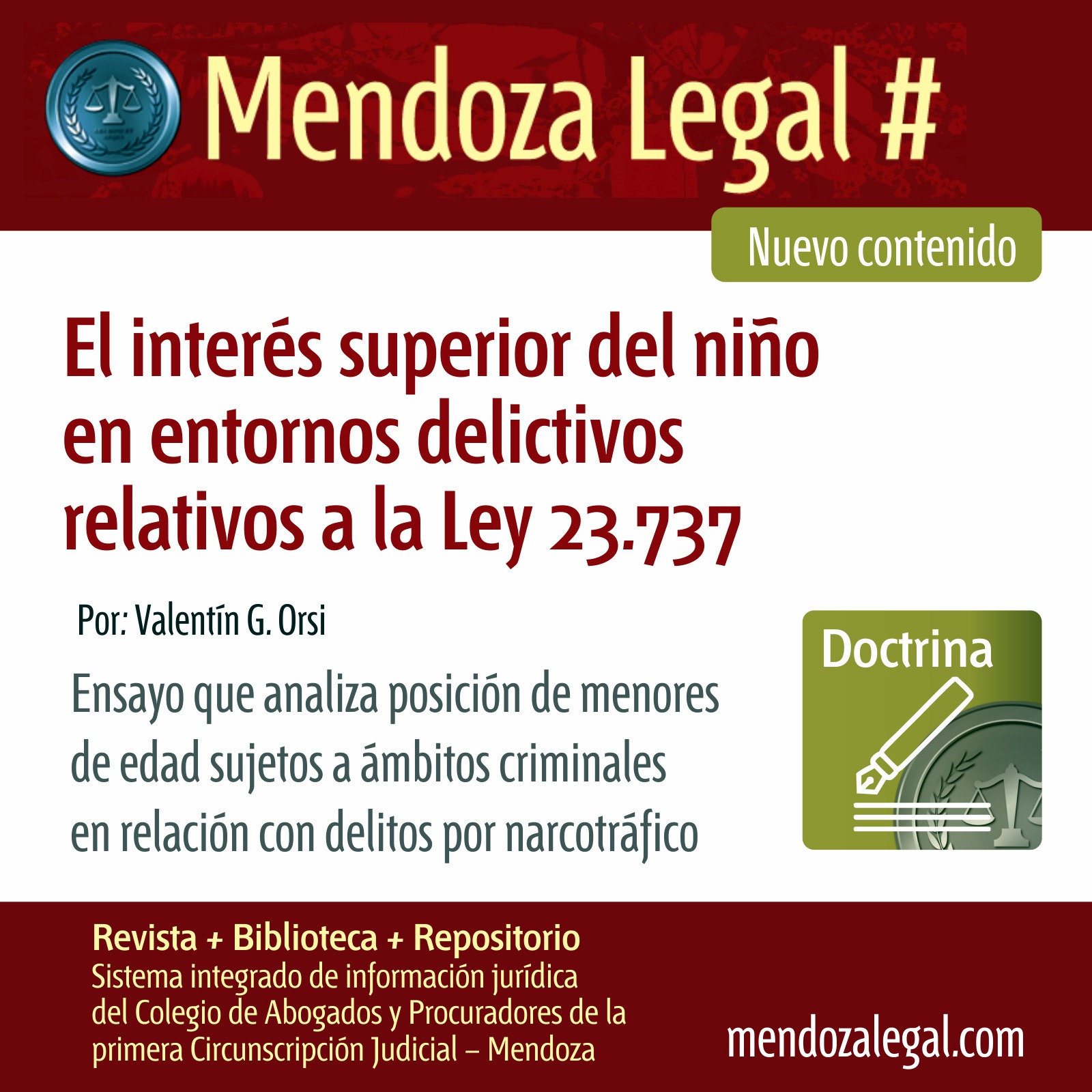 En Mendoza Legal, el sistema integrado de información jurídica del Colegio de Abogados y Procuradores de la Primera Circunscripción Judicial de Mendoza, puedes consultar el texto completo de este trabajo, haciendo clic aquí: https://mendozalegal.com/2025/08/14/el-interes-superior-del-nino-en-entornos-delictivos-relativos-a-la-ley-23-737/