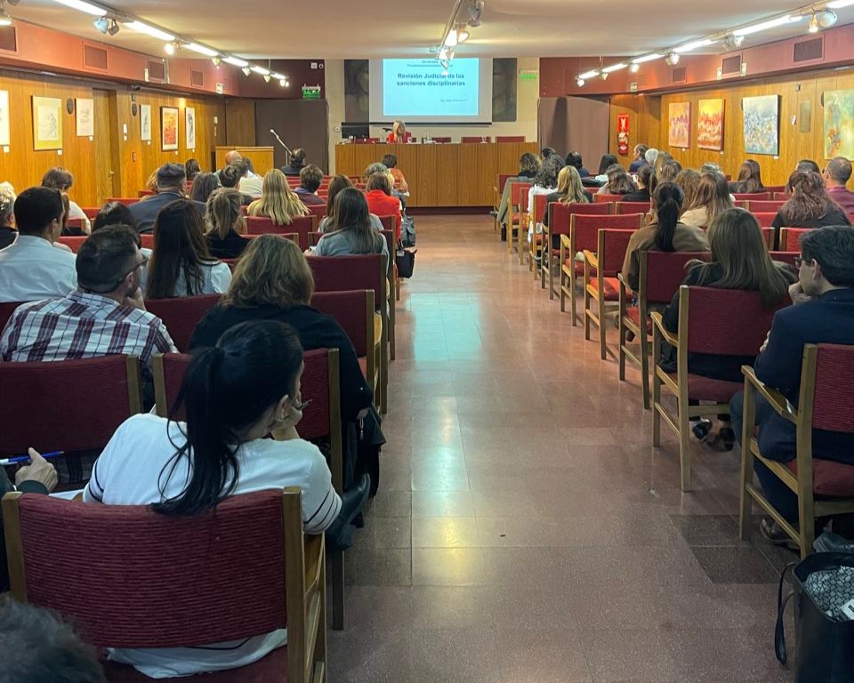El primer día disertaron la Mg. Silvia Moretti sobre «Revisión judicial de la sanción disciplinaria» y el Mg. Ernesto Bustelo sobre «Nulidades en el procedimiento sumarial».