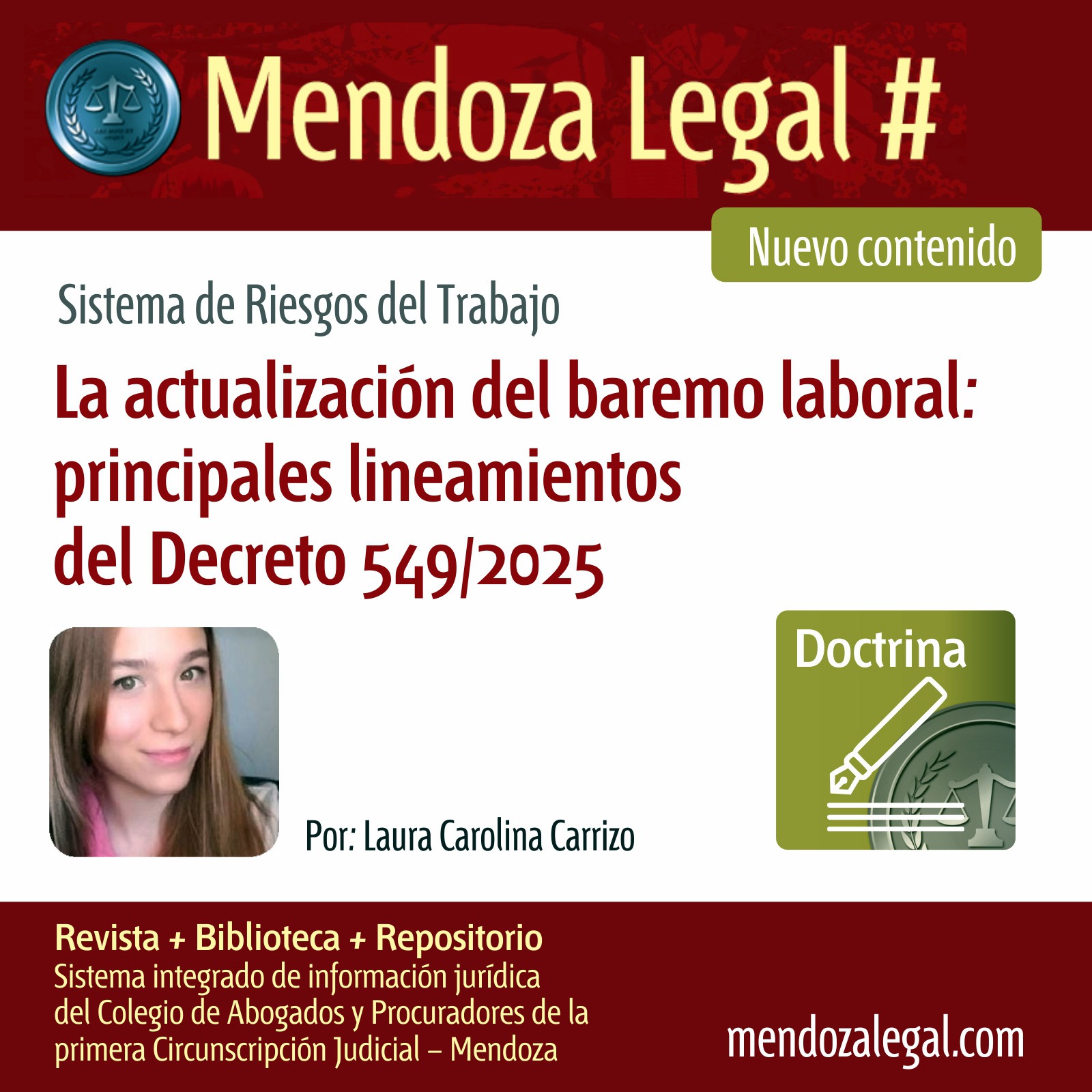 En Mendoza Legal, el sistema integrado de información jurídica del Colegio de Abogados y Procuradores de la Primera Circunscripción Judicial de Mendoza, puedes consultar el texto completo, haciendo clic aquí: https://mendozalegal.com/2026/03/13/la-actualizacion-del-baremo-laboral/