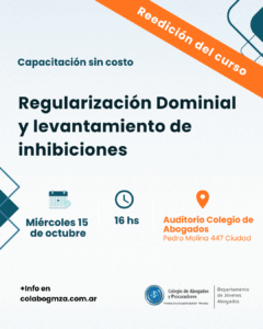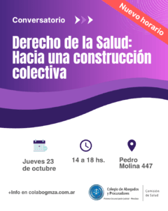 Será el miércoles 15 de octubre, a las 16, en el Auditorio del Colegio de Abogados y Procuradores de la Primera Circunscripción de Mendoza, ubicado