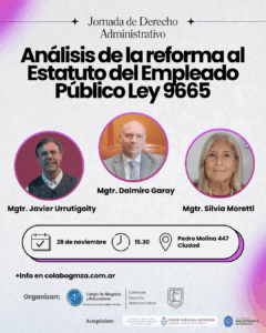 Será en una jornada académica programada para el viernes 28 de noviembre. Tratará las modificaciones a la Ley 9665. Disertarán el Mgtr. Dalmiro Garay, el