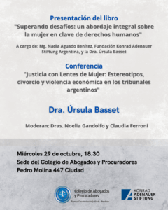 Será el miércoles 29 de octubre, a las 18.30, en el salón de actos del Colegio de Abogados y Procuradores, ubicado en Pedro Molina 447