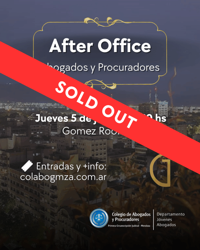 Abogados y procuradores podrán disfrutar de un encuentro distendido y social en un After Office que se realizará el jueves 5 de junio, desde las 19.30, en Gomez Rooftop, situado en Garibaldi 7, 10 piso, de la Ciudad de Mendoza. Entradas agotadas.