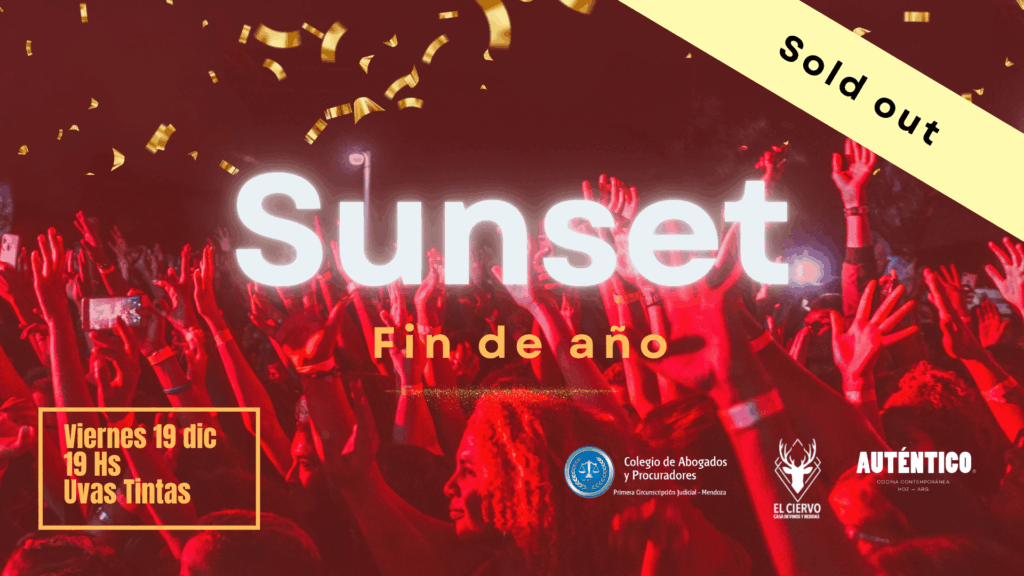 El Colegio de Abogados y Procuradores de la Primera Circunscripción Judicial despedirá el 2025 con el Sunset para abogados y procuradores que incluirá música y servicio de barra. Además, habrá food trucks con diferentes opciones de comida. El evento contará con la participación del DJ Belisario Zaina. La reunión está prevista para el viernes 19 de diciembre desde las 19 en el predio Uvas Tintas, ubicado en Rusell, Maipú. Ubicación: https://goo.gl/maps/ZsPM7N1UPfzz7YPv8