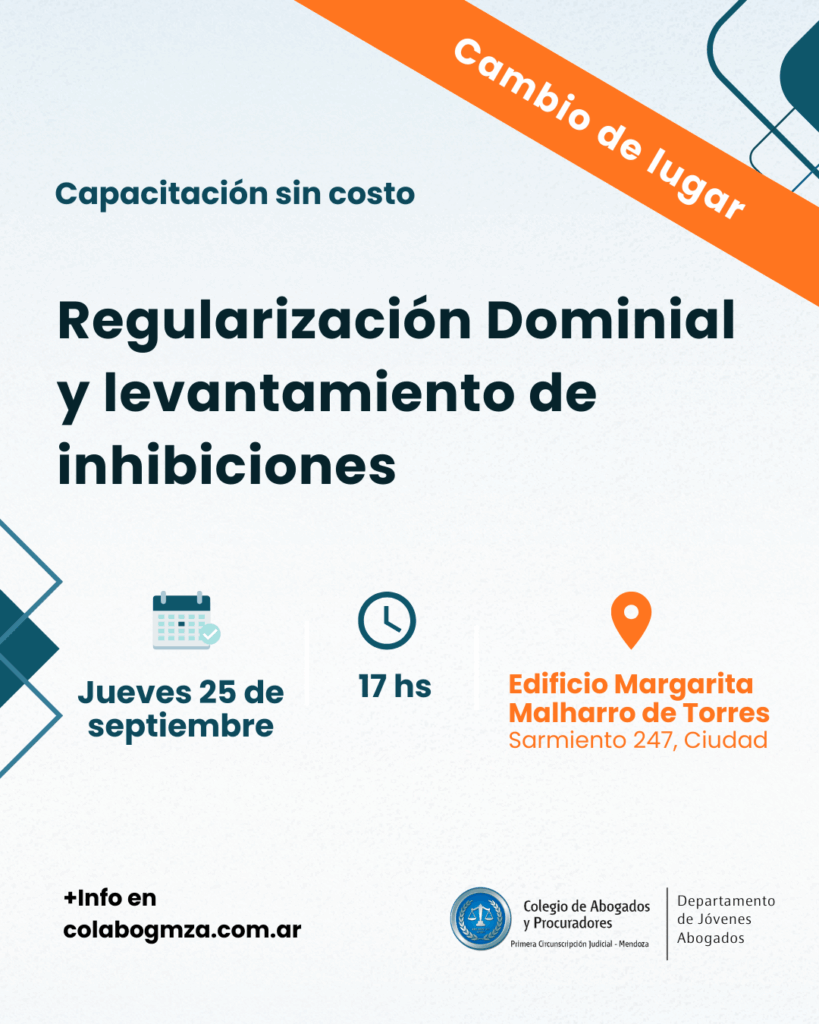 Organiza el Departamento de Jóvenes Abogados del Colegio de Abogados y Procuradores de la Primera Circunscripción Judicial de Mendoza, en coordinación con la Dirección de Gestión de Bienes Registrables del Estado del Ministerio de Gobierno de la Provincia.