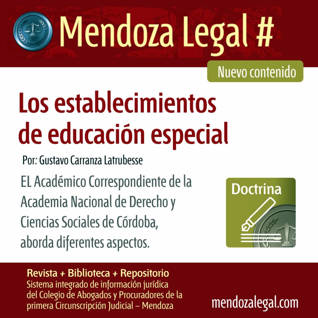 En Mendoza Legal, el sistema integrado de información jurídica del Colegio de Abogados y Procuradores de la Primera Circunscripción Judicial de Mendoza, puedes consultar el texto completo de este trabajo, haciendo clic aquí: https://mendozalegal.com/2025/06/05/los-establecimientos-de-educacion-especial/