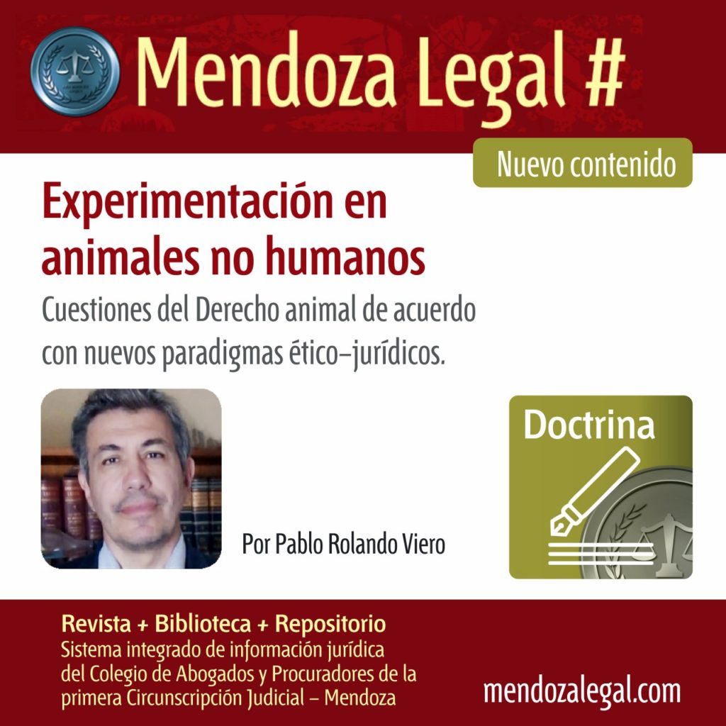 Mendoza Legal es el sistema integrado de información jurídica del Colegio de Abogados y Procuradores de la Primera Circunscripción Judicial de Mendoza. Una de sus últimas publicaciones ofrece un artículo de Pablo Rolando Viero, abogado por la Universidad Nacional del Litoral y miembro de la Comisión de Derecho Animal del Colegio de Abogados.
