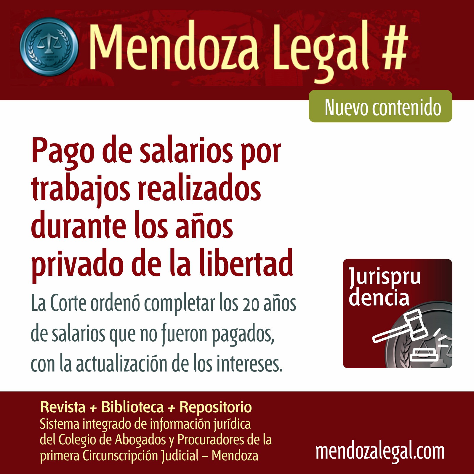 En Mendoza Legal, el sistema integrado de información jurídica del Colegio de Abogados y Procuradores de la Primera Circunscripción Judicial de Mendoza, los interesados pueden consultar el fallo completo haciendo clic aquí: https://mendozalegal.com/2025/05/29/pago-de-salarios-por-trabajos-realizados-durante-los-anos-privado-de-la-libertad/